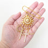 Gold suncatcher moon and dagger brooch
