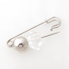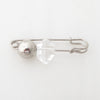 Quartz and silver ball safety pin brooch
