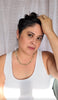 Materials are: green amethyst crystal nuggets and stones, silk cord, gold plated metal spacer beads, gold plated metal end caps, with a 24kt gold vermeil over brass large toggle clasp. Length of necklace is 22", largest nugget size is 5/8" high and wide, and toggle clasp circle is 3/4" high and wide. It is slightly on the heavier side, so it is not for those who are unaccustomed to wearing slightly heavier pieces.